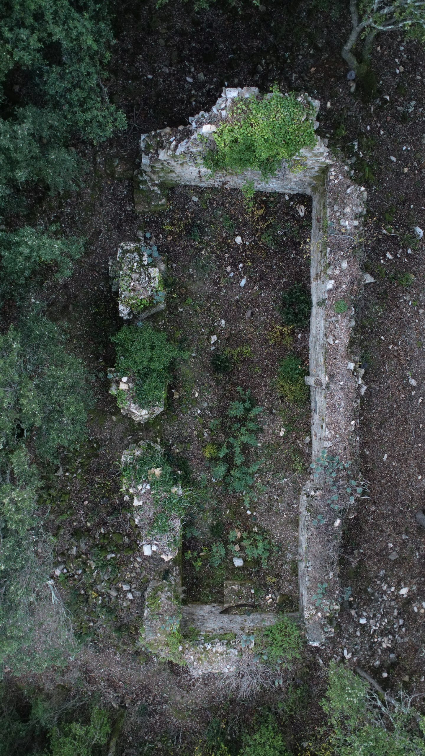 La nef (longueur 9 m, largeur 4,75 m à l’est/ 4,90 m à l’ouest) est divisée en trois travées au moyen de piliers engagés semi-circulaires sur des bases simples. Ils débouchent sur des chapiteaux en forme de cube d’où partent des arcs-doubleaux soutenant la voûte dont on voit encore le départ. Sur le mur nord quelques restes de peintures murales sont préservés. Les piliers sont épaulés à l’extérieur par des contreforts. Au sud s’ouvre dans la première travée une porte et dans les autres des fenêtres à double ébrasements. Séparé de la nef par deux piliers qui portaient l’arc triomphal se trouve le chœur à peu près carré (longueur 3,70/3,90 m sur largeur 3,73/3,77 m dans l’œuvre), primitivement couvert d’une voûte en berceau. Il est éclairé au sud d’une fenêtre à double ébrasement. Une niche liturgique se trouve à coté de la fenêtre, deux autres niches sont creusées dans le mur nord de la troisième travée de la nef.